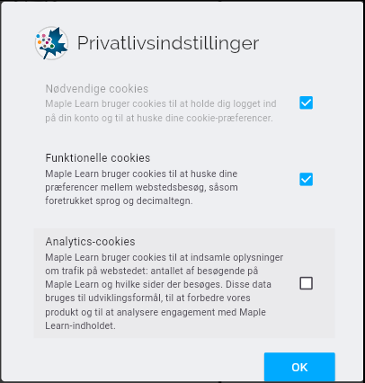 Kontakt Maplesoft og anmod om at deaktivering af AI assistenten for din konto/dine kurser.
